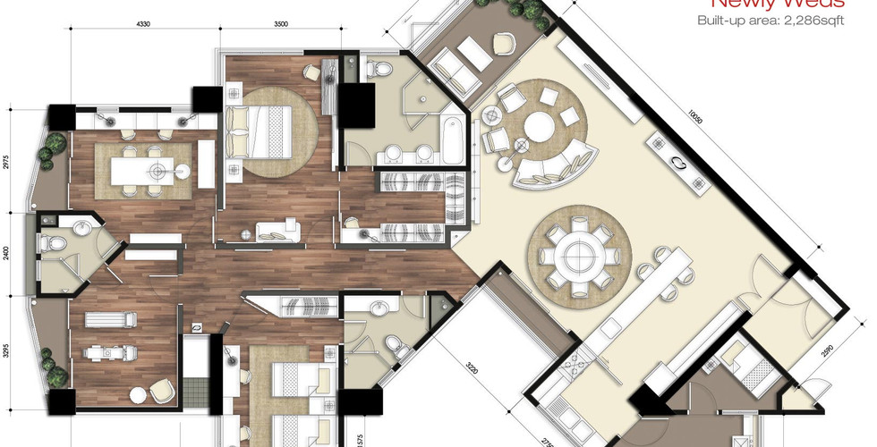 Newly Weds: This design is ideal for couples who are starting a new life together. 'The Newly Weds' includes designated areas for a gym and study. There is also a guest room for family and friends. Once the family expands, the walls can be removed and rooms can be converted to accommodate new additions.